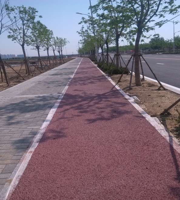2.0.2由于高強(qiáng)度透水混凝土中彩色透水專用膠結(jié)料的顏色多種多樣,根據(jù)現(xiàn)場環(huán)境和工程特點(diǎn),可使透水混凝土道路與環(huán)境完美結(jié)合。