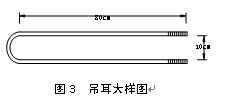 吊耳設(shè)在內(nèi)箱縱向1/4、橫向1/4處,共4個吊點,保證重心平衡,吊耳用φ16圓鋼制作,下端鎖扣在內(nèi)模支架水平桿上,每個吊耳鎖扣1根6 m吊帶。吊耳如圖3所示。