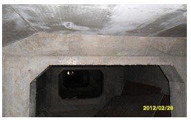 拆除時應(yīng)按順序由上而下、一步一清,不準(zhǔn)上下同時作業(yè)。拆除腳手架斜桿,應(yīng)先拆中間扣,再拆兩頭扣,由中間操作人往下桿子;拆除模板支架嚴(yán)禁猛撬、硬砸或大面積撬落和拉倒。完工前,不得留下松動和懸掛的模板,拆下的模板應(yīng)及時運送到指定地點集中堆放。采用內(nèi)箱模板整體安裝,混凝土一次性澆筑后的箱內(nèi)情況如圖5所示。