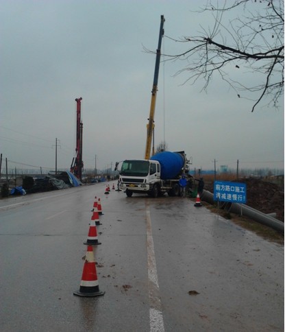 隨著冬季嚴寒的進一步加劇,龍青高速公路全線已臨近冬季停工階段,2012年12月14日上午,萊西松旺莊分離立交項目進行了臨近213省道主墩承臺基礎混凝土澆筑施工。
