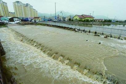 受江淮氣旋影響,5月26日,島城經(jīng)歷了今年第一次特大暴雨。25日,公司相關(guān)部室提前下發(fā)防汛警報,要求各項目部提前制定防汛應(yīng)急預(yù)案,配備好沙袋、雨衣雨靴、照明、抽水設(shè)備。盡管如此,我公司嶗山路沙子口橋項目部受特殊地理位置、施工環(huán)境、天文大潮的影響,致使河道水面暴漲,交通中斷,附近居民住宅積水倒灌,受災(zāi)嚴重。