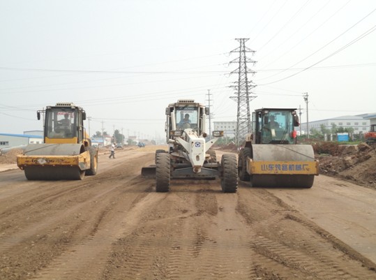 膠州市西部新城區(qū)柳州路工程(揚州路-蘭州路)自2012年9月份開工以來,公司總工程師、副總經理孫成山親自掛帥,帶領項目部人員克服沿線電力線路、工廠門口、通信光纜等障礙物的干擾,在兩排電桿中間插空施工雨污水管道,由于施工場地狹窄、施工場面較零亂,且受交通管制影響,路基上方土一直未能及時運輸。