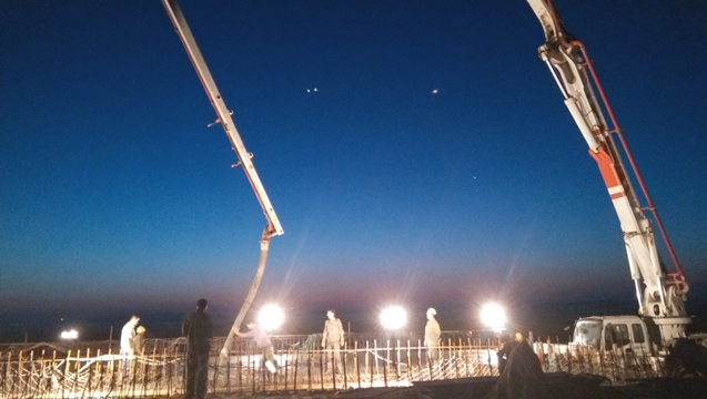 經(jīng)過16個(gè)小時(shí)的連續(xù)施工,隨著最后一方混凝土泵送入模,終于在28日凌晨4時(shí)40分完成全部混凝土澆筑工作。眼看著又一個(gè)工程逐漸成型,項(xiàng)目部管理人員疲憊的臉龐上露出了舒心和笑意,回顧過去的兩年時(shí)光,從工程進(jìn)場直到今夜,歷經(jīng)寒冬,走過酷暑,同事們?nèi)蝿谌卧?/span>通宵達(dá)旦看成家常便飯,當(dāng)頭烈日加班加點(diǎn)更是習(xí)以為常。這里留下了他們數(shù)不清的汗水,烙下了他們無數(shù)個(gè)日夜穿梭的腳印,而今天悄然矗立起的這座橫貫?zāi)媳钡?/span>現(xiàn)代化大橋是對他們付出的最好回報(bào)。