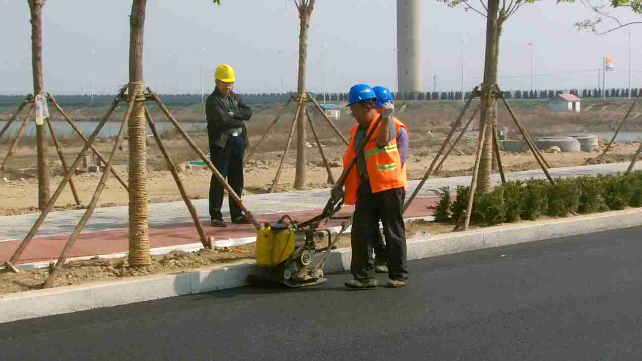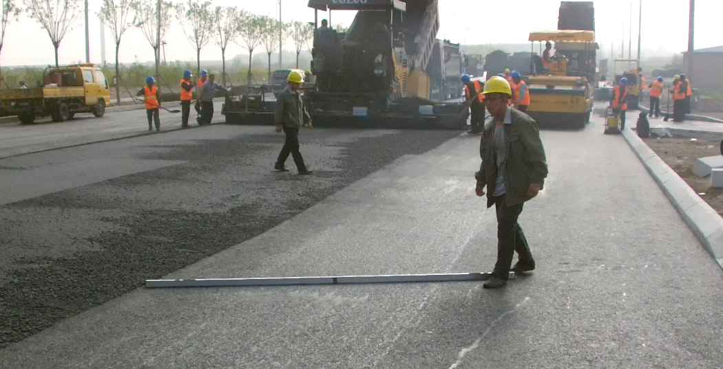 施工前,按照制定的施工方案對每一位人員進(jìn)行技術(shù)交底,做到各有其責(zé),相互配合;使用瀝青灑布車在已清掃完畢的路面上進(jìn)行瀝青粘層油的灑布,達(dá)到覆蓋率0.5L/m2以上。施工過程中,項(xiàng)目部人員嚴(yán)格技術(shù)規(guī)范進(jìn)行,確保工程質(zhì)量滿足設(shè)計(jì)要求。為保證攤鋪機(jī)接縫的熱處理,兩臺攤鋪機(jī)成梯形攤鋪,距離保持在20m左右。雨水篦子順坡環(huán)節(jié),應(yīng)高新區(qū)質(zhì)監(jiān)站要求,嚴(yán)格按照圖集施工,在橫向0.5米與縱向1米處開始順坡,務(wù)必達(dá)到業(yè)主與質(zhì)監(jiān)站的要求。路緣石邊緣夯實(shí)中,對于小型壓路機(jī)未碾壓到位的部位,采用平板夯進(jìn)行夯平壓實(shí),由專職施工人員,鏟除由于擠壓高出路面的瀝青料,保證路緣石接觸面處平整、順直。初壓后,專職管理人員緊跟平整度測量,發(fā)現(xiàn)平整度不好的部位及時(shí)進(jìn)行補(bǔ)料處理,保證面層瀝青平整度達(dá)到設(shè)計(jì)與規(guī)范要求。分公司總經(jīng)理程顯光親力親為,現(xiàn)場監(jiān)督瀝青碾壓工作,嚴(yán)格控制碾壓時(shí)間與碾壓速度,嚴(yán)禁壓路機(jī)在已成型的路面上停留,杜絕因壓路機(jī)停留造成的輪跡波浪現(xiàn)象,保證了面層瀝青的平整度。為保證南北兩幅接茬平順,由專職管理人員帶領(lǐng)工人對道路中線進(jìn)行邊緣切直處理,保證了北半幅瀝青面層攤鋪的順直。