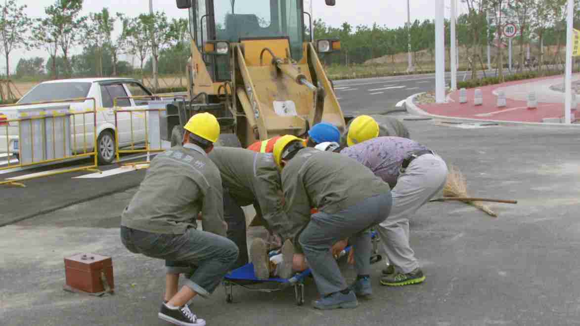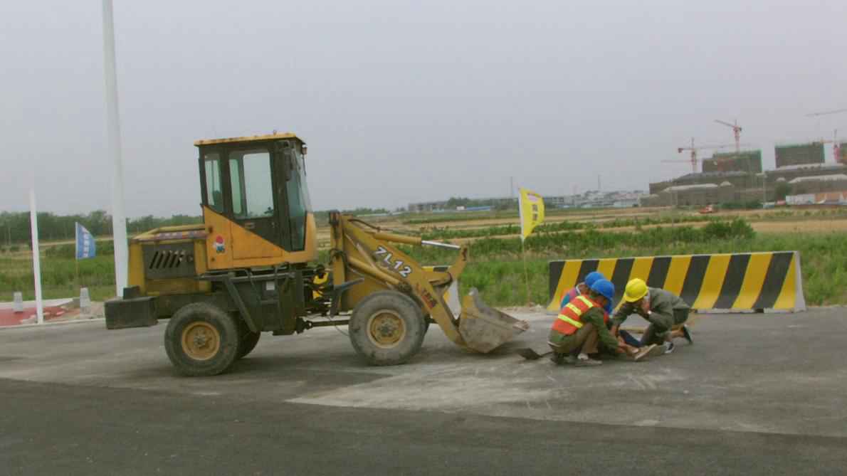 此次演練前,公司總工室、工程管理部、機(jī)械物資部、一分公司共同組織制定詳細(xì)的演練計(jì)劃及應(yīng)急預(yù)案。下午14:00,在大洋一路聚賢橋路路口,一輛小型鏟車在清理現(xiàn)場(chǎng)回填料時(shí),由于存在視野盲區(qū),司機(jī)觀察不周,撞傷一名工人,導(dǎo)致工人小腿骨折,事故發(fā)生后項(xiàng)目部立即啟動(dòng)《機(jī)械傷害應(yīng)急處置預(yù)案》。