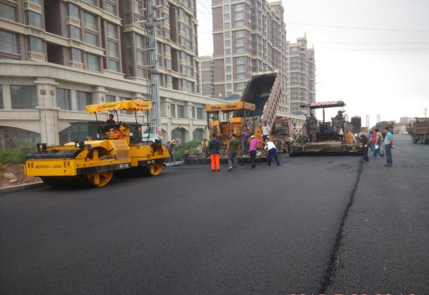 膠州柳州路、寺門首路道排工程,瀝青面層攤鋪