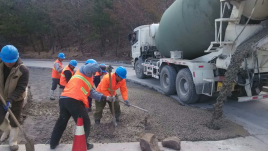 根據(jù)設(shè)計施工要求,對原路面破損、沉降的病害進行處治,混凝土路面銑刨拉毛后進行4.5cm AC-16底層瀝青混凝土和3.5cm AC-13面層瀝青混凝土攤鋪。我方通過施工方案會審后建議業(yè)主對原路面銑刨后追加1cm橡膠瀝青應力吸收層,增加原道路面與瀝青混凝土面的粘結(jié)度及防止瀝青混凝土的反射性裂紋。至4月2日,該工程已完成破損路面病害處治、混凝土路面銑刨拉毛、路沿石調(diào)整、橡膠瀝青應力吸收層攤鋪施工;4月3日開始底層瀝青混凝土攤鋪,于4月8日完成,攤鋪面積約65000㎡。根據(jù)底層瀝青施工進展情況分析,預計4月18日前可完成面層攤鋪施工,比甲方預定日期提前2天,在確保質(zhì)量和進度的前提下按照甲方要求穩(wěn)步推進,保證勞動節(jié)之前完成車行道施工。
