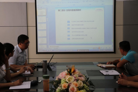 公司法律顧問、律師鞠波從合同法律風險識別及防范、企業(yè)用工法律風險及防范兩大內(nèi)容展開,從我公司企業(yè)經(jīng)營合同簽訂、企業(yè)用工勞動合同簽訂現(xiàn)狀出發(fā),通過對以往公司管理中發(fā)生的租賃合同、施工承包合同、勞動用工合同糾紛,及成功簽訂執(zhí)行的規(guī)范合同范本分析,向員工們詳細講解了合同談判和簽訂過程中需要特別注意的各種風險。鞠律師提出為避免糾紛需認真做到以下幾點:1、工作中要做好文字記錄和簽認程序,2、員工在對外業(yè)務(wù)中明確自身代表的企業(yè)立場,3、公司簽訂合同時,解決好歸屬地管轄問題,4、勞動用工過程中對甲乙雙方的權(quán)益保護等。通過對各案例深入淺出的講解,將一些晦澀的法律知識生動的灌輸給員工,員工們的法律意識得到極大提高。