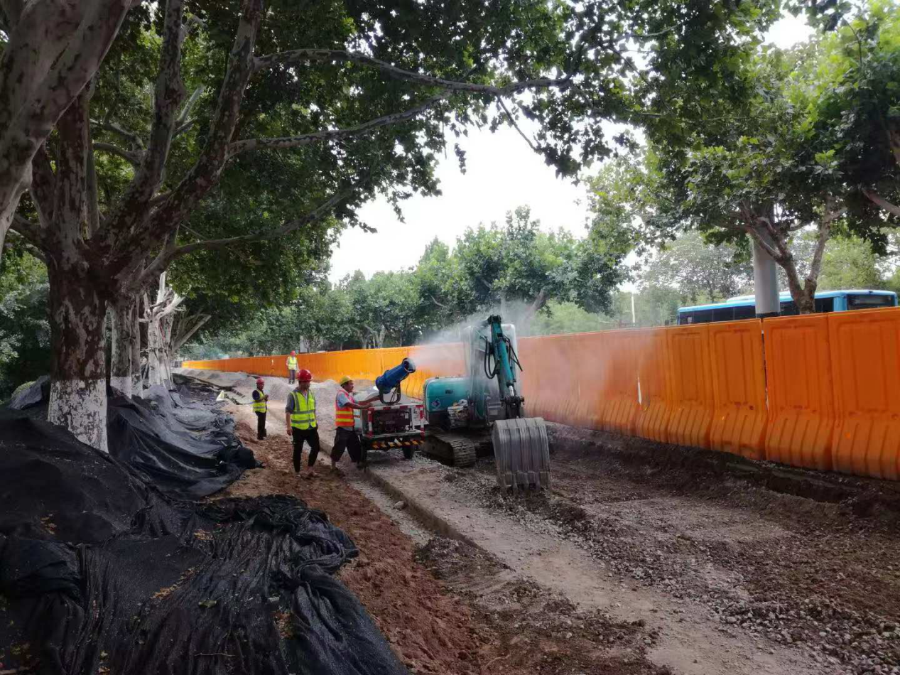 道路開挖采用霧炮機灑水抑塵