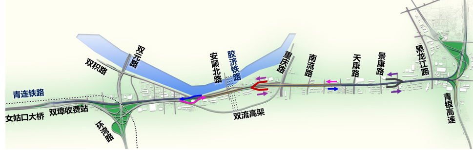 新機(jī)場(chǎng)高速連接線(雙埠.夏莊段)作為東岸城區(qū)與新機(jī)場(chǎng)最短, 最快捷的聯(lián)系通道,建成后將與青銀高速、跨海大橋接線、環(huán)灣路等既有城市快速路以及黑龍江路、重慶路等南北向城市干道共同形成東岸城區(qū)快速通達(dá)新機(jī)場(chǎng)的便捷路網(wǎng)體系。作為橫向聯(lián)系膠州灣高速和青銀高速的交通中樞, 新機(jī)場(chǎng)高速連接線(雙埠-夏莊段)不論是在中心城區(qū)快速路網(wǎng)銜接、還是在機(jī)場(chǎng)交通快速疏解方面,均具有不可替代的重要功能, 亟需在新機(jī)場(chǎng)轉(zhuǎn)場(chǎng)運(yùn)營(yíng)前盡快開工建設(shè)。