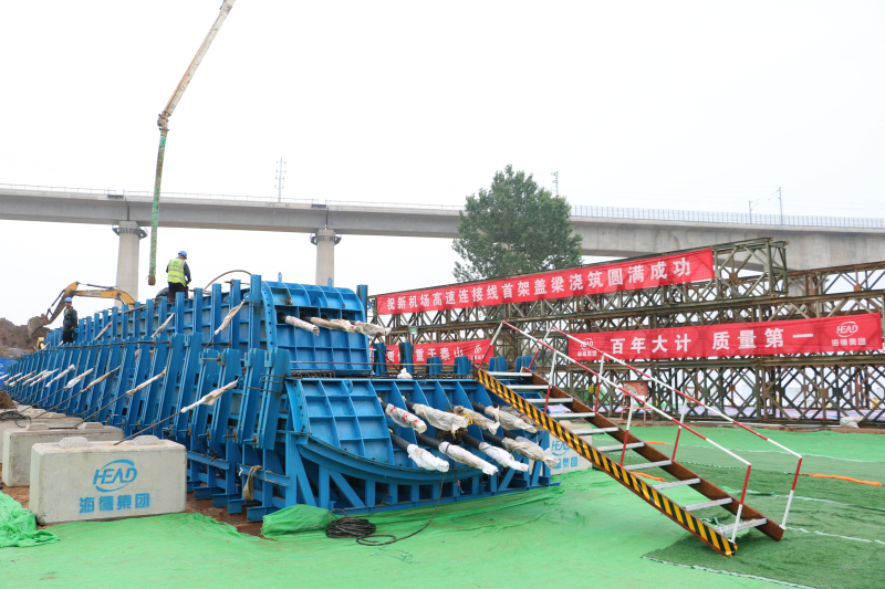 2020年6月17日10點(diǎn)17分,伴隨著機(jī)器的轟鳴,集團(tuán)承建的新機(jī)場高速連接線(雙埠-夏莊段)工程蓋梁澆筑正式開始,工人們冒雨對重達(dá)358噸的蓋梁混凝土進(jìn)行澆筑。該蓋梁的順利澆筑,標(biāo)志著新機(jī)場高速連接線上部結(jié)構(gòu)施工正式進(jìn)入攻堅(jiān)階段,預(yù)制箱梁安裝也進(jìn)入倒計(jì)時(shí),我集團(tuán)公司的施工進(jìn)程已走在全線的前列。