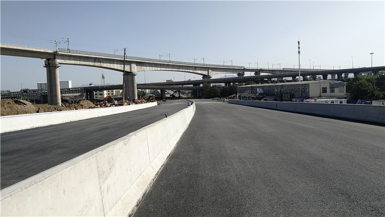 11月2日14時(shí),在我集團(tuán)承建的新機(jī)場(chǎng)高速連接線(雙埠-夏莊段)工程一標(biāo)段施工現(xiàn)場(chǎng),攤鋪機(jī)階梯式排列、人員分工協(xié)作,自卸車上傾倒而下的滾燙的瀝青持續(xù)不斷地?cái)備伒铰访嫔?,首段主線瀝青正式開鋪。集團(tuán)公司在全線十多家參建單位中拔得頭彩,第一家開展瀝青面層攤鋪?zhàn)鳂I(yè)。