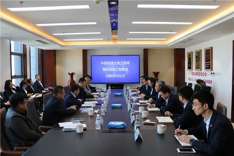 2020年11月25日上午,集團(tuán)公司與中國(guó)鐵建大橋工程局集團(tuán)有限公司戰(zhàn)略合作簽約儀式在集團(tuán)27樓會(huì)議室成功舉行。集團(tuán)公司董事長(zhǎng)鞏光磊、集團(tuán)執(zhí)行總裁寇媛媛、集團(tuán)執(zhí)行總裁孫成山、集團(tuán)副總裁呂同占、集團(tuán)副總裁白正海等領(lǐng)導(dǎo),中國(guó)鐵建股份有限公司中原區(qū)域青島總部副總經(jīng)理趙廣正、中國(guó)鐵建大橋局中原區(qū)域總經(jīng)理張福寶一行5人出席此次儀式。