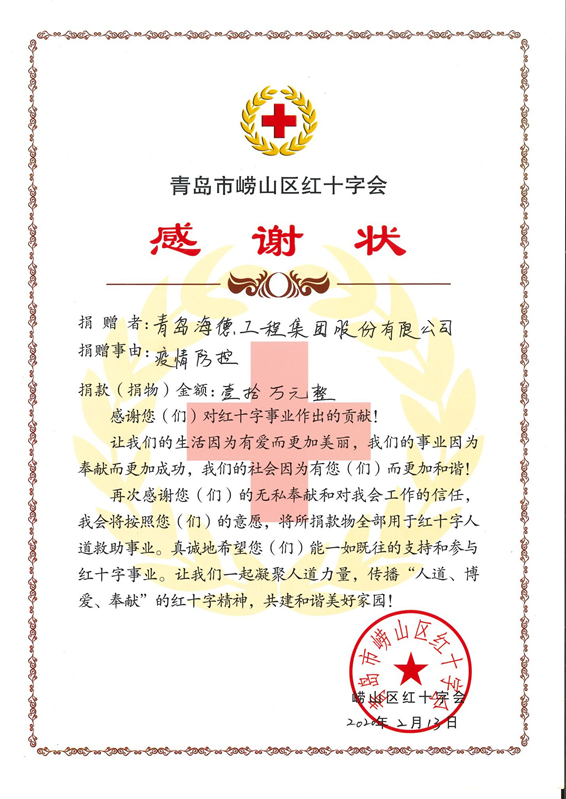 新冠疫情發(fā)生后集團及海內(nèi)外各分支機構(gòu)、所有員工都伸出援助之手抗擊疫情,向紅十字會、慈善總會、社區(qū)街道、布基納法索政府 、赤道幾內(nèi)亞醫(yī)療中心捐款捐物,被評選為“最具社會責任感企業(yè)”。