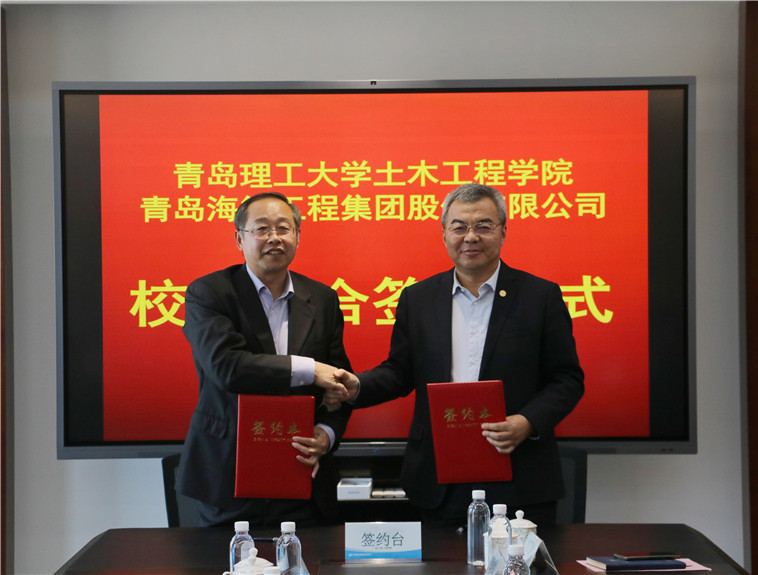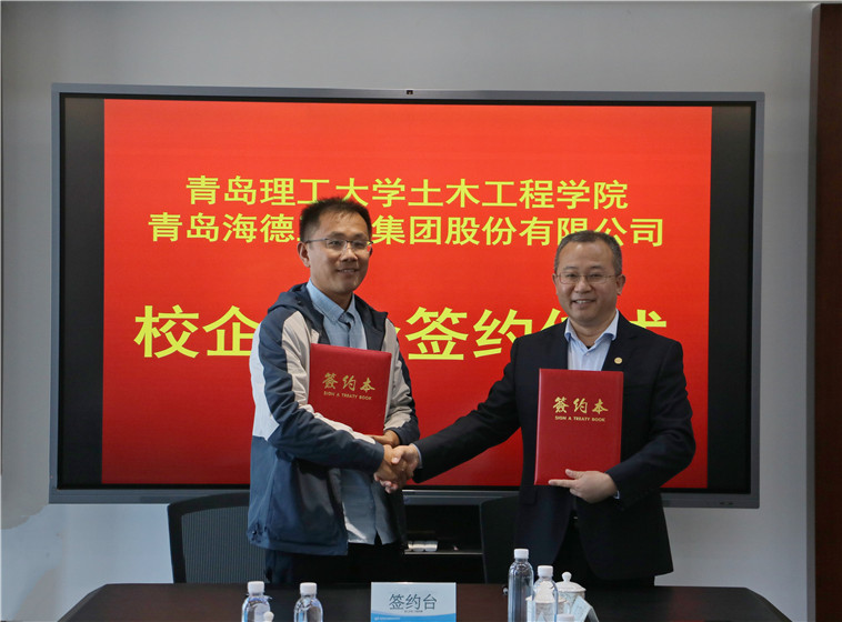 2021年10月25日上午10時,青島理工大學(xué)土木工程學(xué)院與青島海德工程集團(tuán)股份有限公司“土木水利專業(yè)學(xué)位研究生聯(lián)合培養(yǎng)基地”校企合作簽約儀式在集團(tuán)總部會議室隆重舉行。