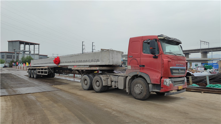婁山后河橋位于李滄區(qū)安順路婁山后河上,為南北走向。橋梁分東西兩幅,沿道路中心線方向跨徑布置為4x20=80m,橋梁上部結(jié)構(gòu)采用C50預(yù)應(yīng)力混凝土簡支空心板,東西兩幅每跨各布置16塊,共計(jì)128塊(其中邊板16塊,中板112塊)??招陌彘L19.6-20.3m,中板寬1.24m,邊板寬1.545m,高0.95m,重量達(dá)36t。
