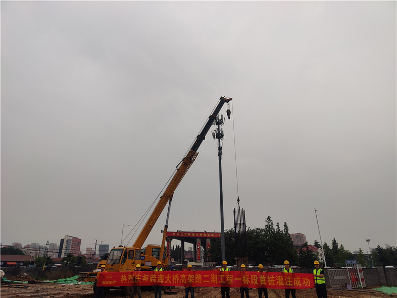 2022年6月14日21時(shí)38分,由我集團(tuán)二分公司負(fù)責(zé)施工的跨海大橋高架路二期工程一標(biāo)段首樁成功澆筑,打響了全線施工的第一槍,標(biāo)志著該工程進(jìn)入主體施工階段。