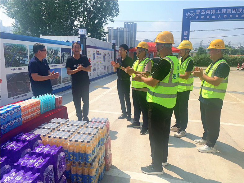 驕陽似火,酷暑難當(dāng)。連日來的高溫天氣,給工地一線員工帶來了極大的考驗(yàn),也時(shí)刻牽動(dòng)著各方領(lǐng)導(dǎo)們的心。為做好防暑降溫工作、改善一線員工工作條件,確保一線員工安全度夏,促進(jìn)各崗位安全生產(chǎn),8月3日,嶗山區(qū)工業(yè)和信息化工會(huì)主席董元波帶隊(duì),我集團(tuán)副總裁、工會(huì)主席呂同占,綜合管理部總經(jīng)理孟鵬陪同,深入集團(tuán)各項(xiàng)目部一線工地,為奮戰(zhàn)在一線的員工獻(xiàn)上真摯關(guān)懷,送去了絲絲涼意。