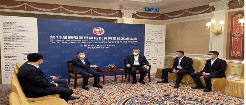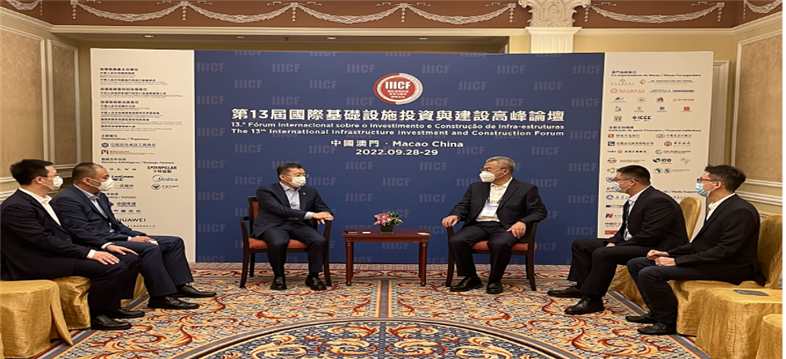 9月28日,由中國對外承包工程商會和澳門貿(mào)易投資促進(jìn)局共同主辦的第13屆國際基礎(chǔ)設(shè)施投資與建設(shè)高峰論壇在澳門開幕。澳門特別行政區(qū)行政長官賀一誠、中央人民政府駐澳門特別行政區(qū)聯(lián)絡(luò)辦公室主任鄭新聰、外交部駐澳門特別行政區(qū)特派員公署特派員劉顯法、澳門特別行政區(qū)政府保安司司長黃少澤,以及有關(guān)國家駐澳門外交使節(jié),國際金融機(jī)構(gòu)及跨國企業(yè)高管等47位貴賓共同主禮開幕式。我集團(tuán)董事長鞏光磊,集團(tuán)副總裁、海外分董事長白正海,海外分副總經(jīng)理譚翔共赴澳門參會。