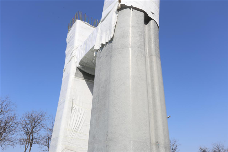 集團(tuán)承建的項目首件墩柱日前已順利完成澆筑,為解決高大墩柱混凝土澆筑中施工難度大問題,項目部在墩柱內(nèi)部設(shè)置串筒,采用八臺振搗棒,均勻分布,自墩柱底向上分層連續(xù)振搗,經(jīng)驗豐富技術(shù)人員根據(jù)振搗時間與振搗聲音對混凝土進(jìn)行雙重控制,保證澆筑質(zhì)量。經(jīng)過我方優(yōu)化組織,精心總結(jié),科學(xué)施工,采取了“盲振”工藝使得立柱成品呈現(xiàn)鏡面效果,混凝土觀感質(zhì)量接近清水混凝土標(biāo)準(zhǔn),施工質(zhì)量處于全線前列。城發(fā)集團(tuán)組織重慶路快速路項目全線施工單位負(fù)責(zé)人、總監(jiān)、班組負(fù)責(zé)人到我單位施工段進(jìn)行觀摩,得到現(xiàn)場觀摩同行一致好評。此次又作為市住建局開展的“鍛造年輕干部走一線 優(yōu)化營商環(huán)境進(jìn)現(xiàn)場”專題觀摩活動的觀摩現(xiàn)場。項目自開工以來,公司領(lǐng)導(dǎo)高度重視,項目部全體成員群策群力,積極主動開創(chuàng)性地開展工作,順利解決項目難點(diǎn),確保了橋梁主體工程順利完成一季度計劃?,F(xiàn)場施工質(zhì)量控制到位,施工質(zhì)量處于全線前列。在黨建引領(lǐng)、安全文明、輿情處置等方面均按上級及有關(guān)領(lǐng)導(dǎo)要求快速反應(yīng),與參建各方關(guān)系融洽。