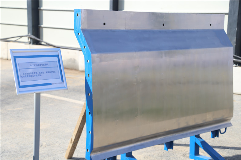 活動最后,市住建局領(lǐng)導(dǎo)一行又觀摩了項目上使用的新型材料。為了響應(yīng)國家“綠水青山”發(fā)展理念,盡可能減少天然石材的使用,集團(tuán)全資子公司青島海德信達(dá)新型材料科技有限公司采用日本技術(shù)、德國工藝研發(fā)了仿石路緣石及仿石透水板等新型材料應(yīng)用到此項目中,具有施工速度快、仿石效果好、強(qiáng)度高、耐磨性能好、抗凍融性佳、透水效果高等優(yōu)點(diǎn),是對海綿城市理念的全面落實(shí)。用于橋梁墩柱施工的“5+1”不銹鋼復(fù)合板模板,作為一種資源節(jié)約型的產(chǎn)品可以減少貴重金屬的消耗,又兼具各種碳素鋼和不銹鋼的特點(diǎn),可以進(jìn)行熱壓、冷彎、切割、焊接等各種加工,有良好的工藝性能,相較于普通模板有表面平整度高、易清潔、易脫模的優(yōu)點(diǎn),能夠有效提高混凝土的外觀質(zhì)量。