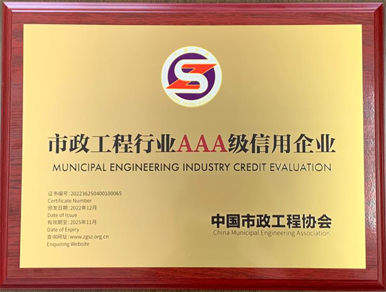 集團(tuán)獲評(píng)中國(guó)市政工程協(xié)會(huì)首批市政工程企業(yè)信用評(píng)價(jià)AAA單位