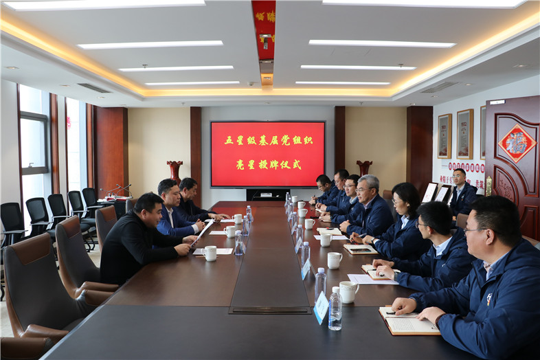 2023年4月28日,集團(tuán)舉辦五星級(jí)基層黨組織亮星授牌儀式,嶗山區(qū)工業(yè)和信息化局黨組成員、副局長(zhǎng)孫明,嶗山區(qū)工業(yè)和信息化局四級(jí)調(diào)研員、機(jī)關(guān)黨委副書記董元波蒞臨集團(tuán)參加此次儀式,對(duì)獲得表彰的集團(tuán)黨支部授牌。嶗山區(qū)工業(yè)和信息化局楊勝主持會(huì)議。集團(tuán)黨總支書記、董事長(zhǎng)鞏光磊,集團(tuán)黨總支委員、執(zhí)行總裁寇媛媛,集團(tuán)黨總支委員、副總裁白正海以及集團(tuán)各支部書記、委員共同參加。