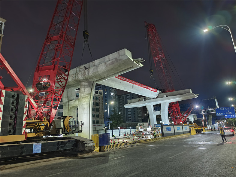 2023年5月27日凌晨,隨著最后一榀箱梁被精確地吊放在指定位置,重慶路快速路項目首跨預(yù)制箱梁順利架設(shè)完成,標志著重慶路快速路橋梁主體正式進入上部結(jié)構(gòu)施工階段,距年底主線貫通節(jié)點又邁進了關(guān)鍵一步。