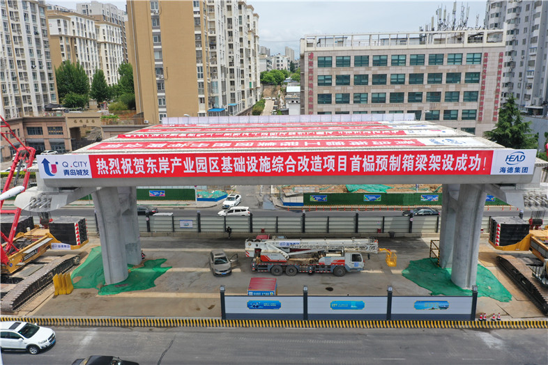 重慶路快速路項目首跨箱梁的順利架設(shè),為后續(xù)箱梁大面積施工提供了有力保障,也為重慶路項目高標準、高質(zhì)量建設(shè)奠定了堅實基礎(chǔ)。下一步,海德集團將繼續(xù)秉承“開工即決戰(zhàn),起步即沖刺”的信念,安全、有序推進工程建設(shè),為青島城市更新和城市建設(shè)三年攻堅行動做貢獻!