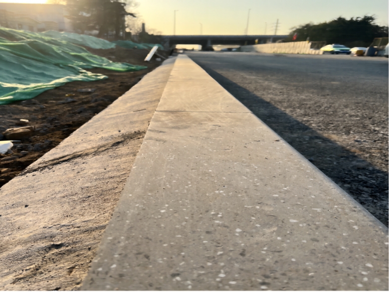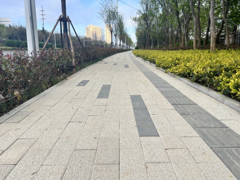 項(xiàng)目采用的仿石路緣石、環(huán)保透水磚和反光路緣石等創(chuàng)新材料,由集團(tuán)全資子公司青島海德信達(dá)新型材料科技有限公司自主研發(fā)生產(chǎn),不僅外觀典雅,效果出眾,而且采用再生資源制作,質(zhì)量從源頭開始控制,結(jié)合定制化生產(chǎn),更加精準(zhǔn)地契合生態(tài)環(huán)保和設(shè)計(jì)要求。并使用集團(tuán)一分公司自主創(chuàng)新研發(fā)的粉塵收集房進(jìn)行材料切割,既實(shí)現(xiàn)了降塵目標(biāo),又改善了工人的作業(yè)環(huán)境,充分體現(xiàn)了集團(tuán)以員工為本的管理理念,這一做法得到了各級(jí)領(lǐng)導(dǎo)的贊譽(yù),并已在嶗山區(qū)廣泛推廣使用。
