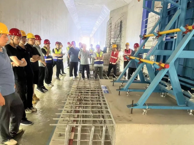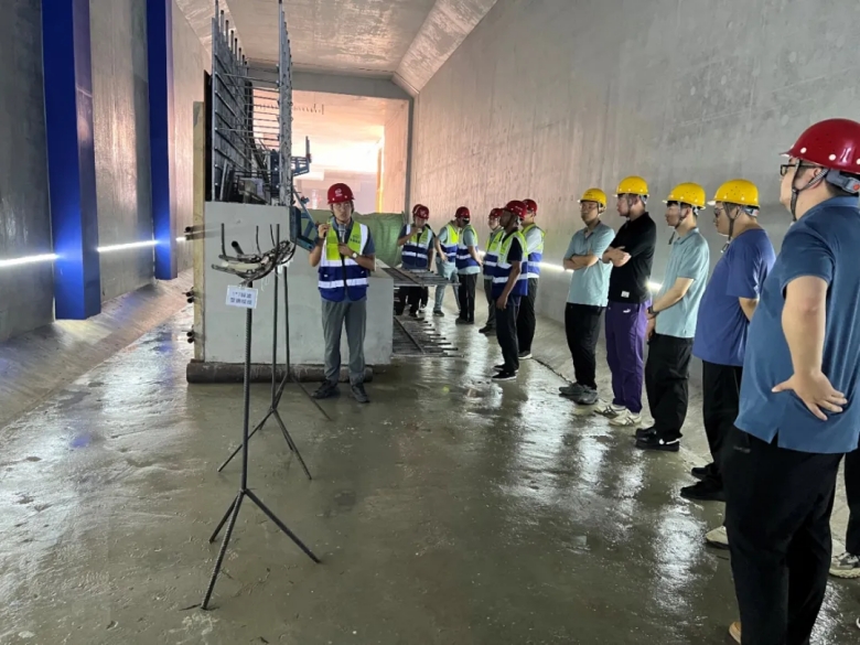 在觀(guān)摩現(xiàn)場(chǎng),項(xiàng)目總工葛帥就明挖區(qū)間一期圍護(hù)結(jié)構(gòu)到主體結(jié)構(gòu)施工過(guò)程中的精細(xì)化管控亮點(diǎn)、施工過(guò)程中班組建設(shè)、世界一流地鐵建設(shè)質(zhì)量精細(xì)化管理、橋隧共建課題研究介紹及階段性成果進(jìn)行了詳細(xì)的介紹和講解。與會(huì)人員對(duì)基坑開(kāi)挖、灌注樁網(wǎng)噴混凝土、高壓旋噴樁、冠梁、擋墻、地下連續(xù)墻、錨索、結(jié)構(gòu)防水質(zhì)量精細(xì)化管控以及實(shí)體樣板、班組建設(shè)情況進(jìn)行了現(xiàn)場(chǎng)觀(guān)摩和經(jīng)驗(yàn)交流,紛紛表示此次觀(guān)摩交流不僅感受到了精細(xì)化管理對(duì)提升工程品質(zhì)的顯著優(yōu)勢(shì),更學(xué)習(xí)到了新材料、新技術(shù)、新工藝應(yīng)用的寶貴經(jīng)驗(yàn),后續(xù)將以本次觀(guān)摩為契機(jī),學(xué)習(xí)借鑒精細(xì)化管理經(jīng)驗(yàn),助力工程現(xiàn)場(chǎng)質(zhì)量精細(xì)化管理水平提升。